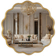 This versatile decorative mirror seamlessly complements bathrooms, living rooms, vanities, nurseries, and entryways. The warm gold tone and unique silhouette make it a statement piece that enhances both natural and artificial lighting while creating the illusion of more space.