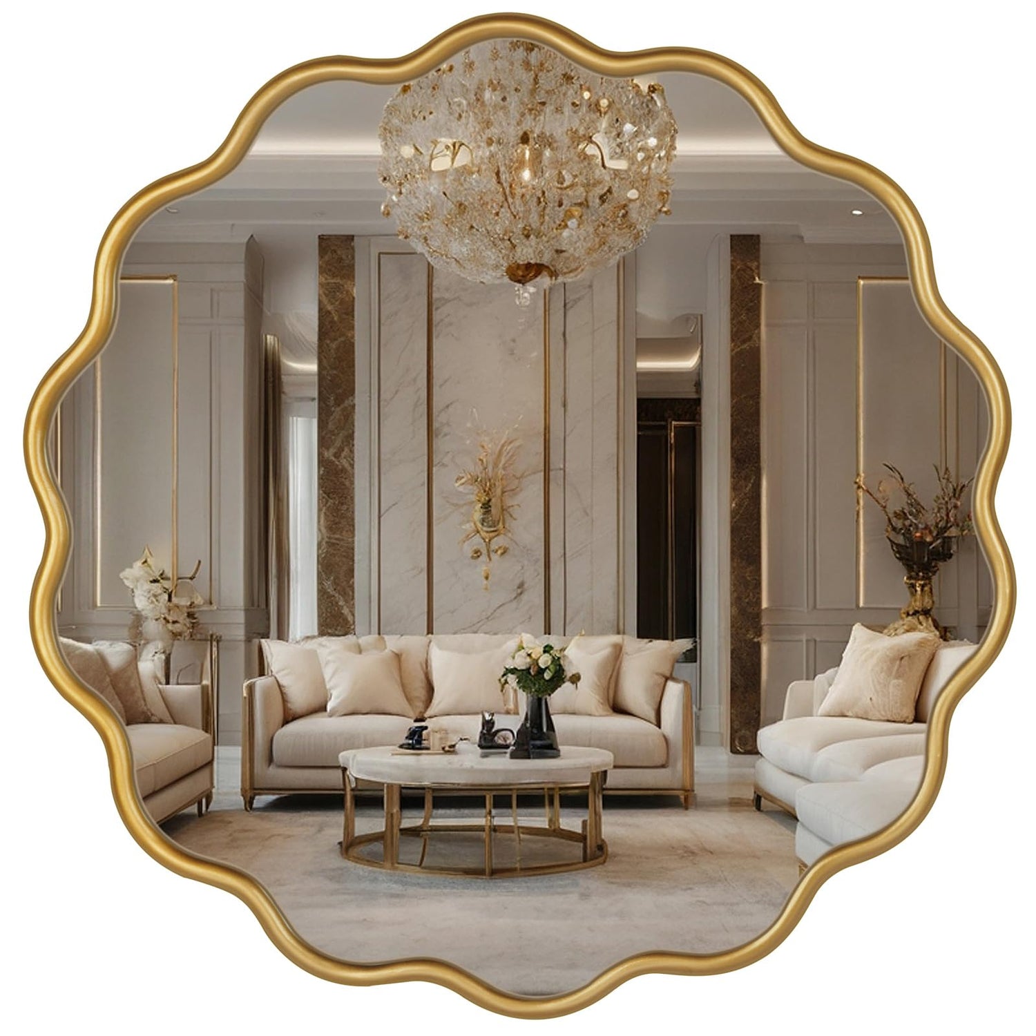 22 Inch Round Wavy Mirror - Modern Gold Wall Decor – Bircata