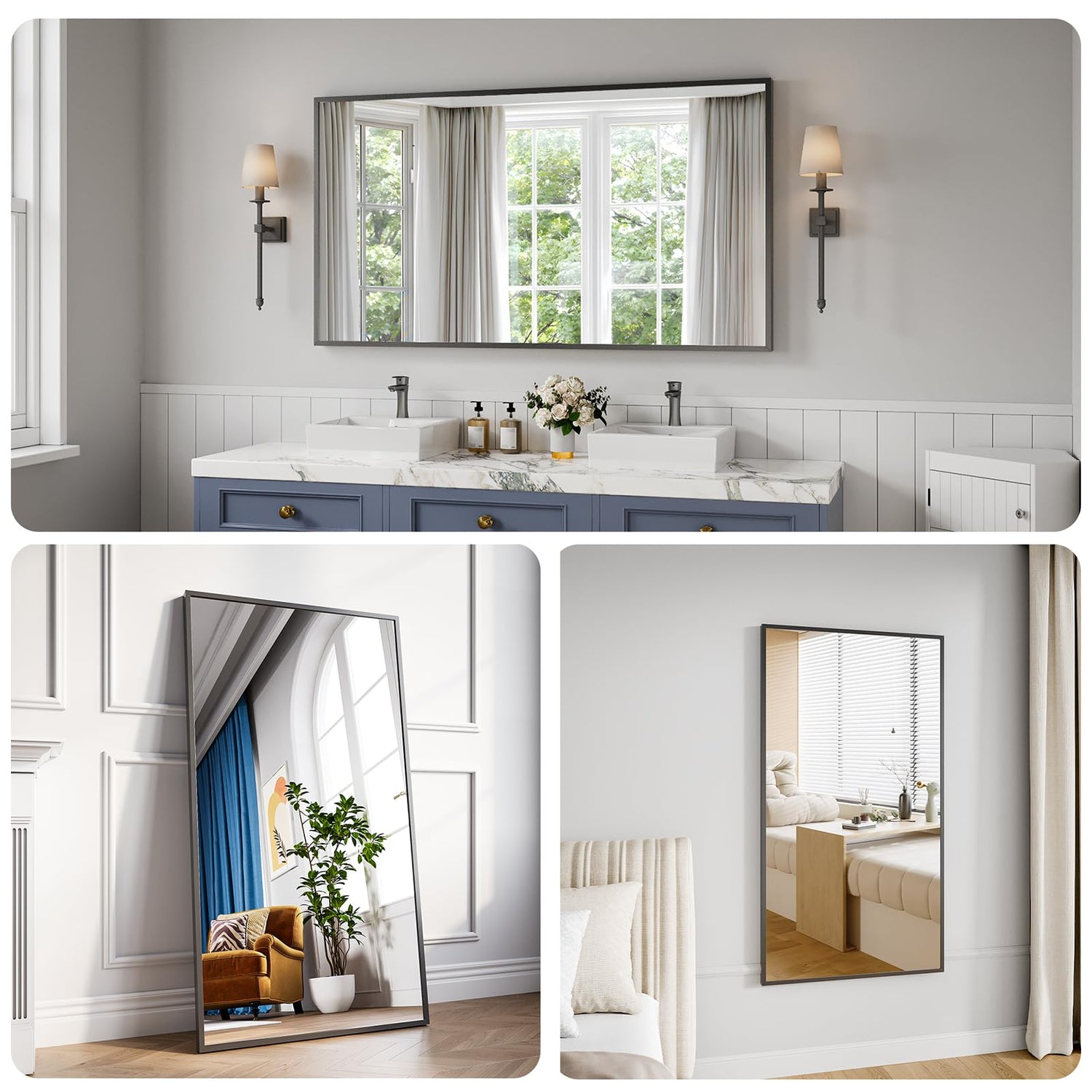Elevate your bathroom, bedroom, or entryway with this sleek 30"x55" matte black rectangle mirror. Featuring premium HD tempered glass and a durable anti-rust aluminum alloy frame, this contemporary vanity mirror combines sophisticated design with lasting quality.