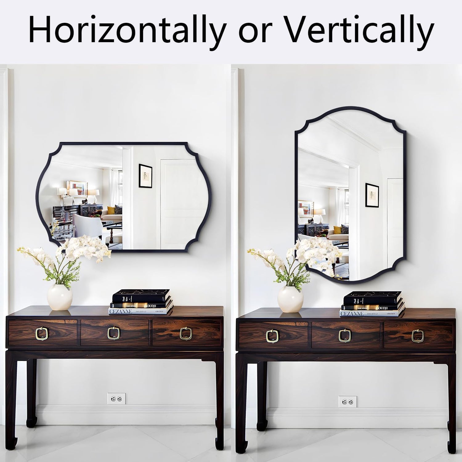 Elevate your space with this sophisticated arched wall mirror featuring an elegant scalloped frame design. The timeless black finish and modern silhouette create a striking focal point that complements any interior style, from contemporary to transitional.