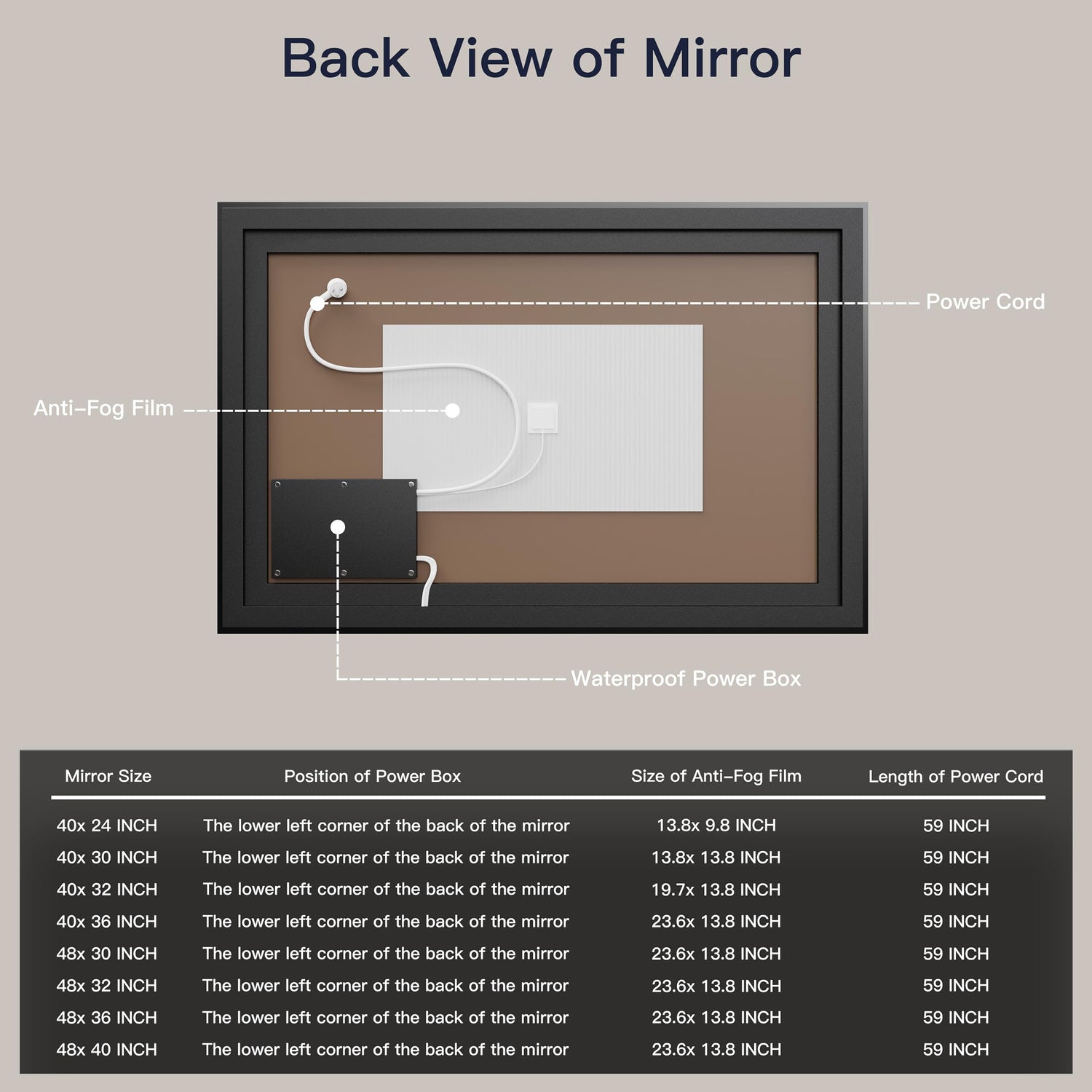 40x30 Dimmable LED Bathroom Mirror with Anti-Fog & Memory Function - Front and Backlit / 40"L x 30"W is backordered and will ship as soon as it is back in stock.