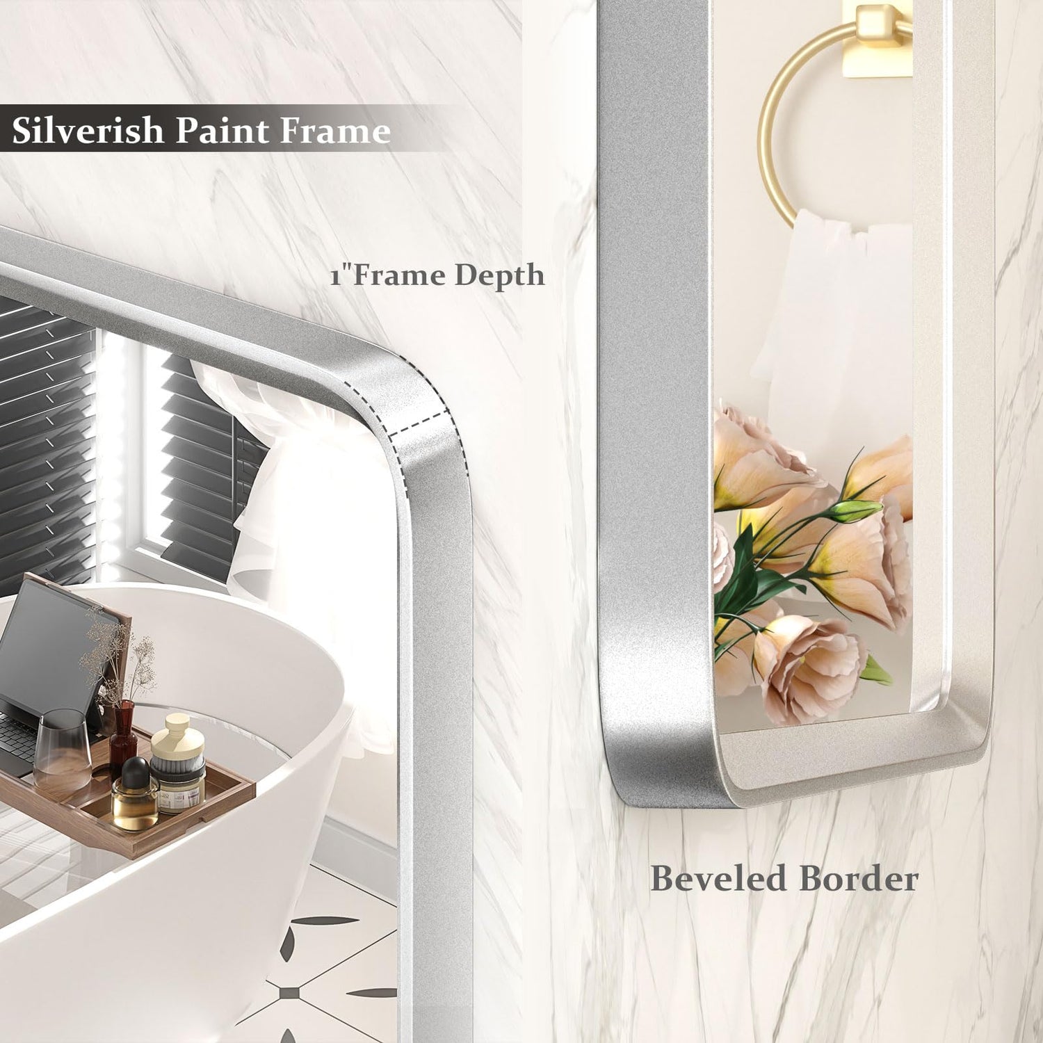 48x30 Inch Silver Bathroom Mirror - Rounded Rectangle Vanity Mirror