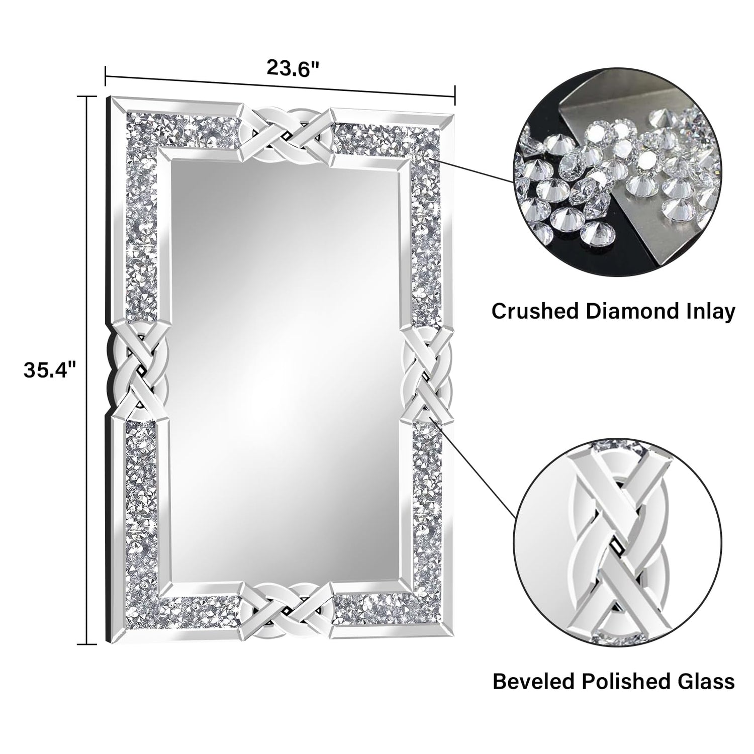 Crushed Diamond Rectangle Wall Mirror 24x36 Inch