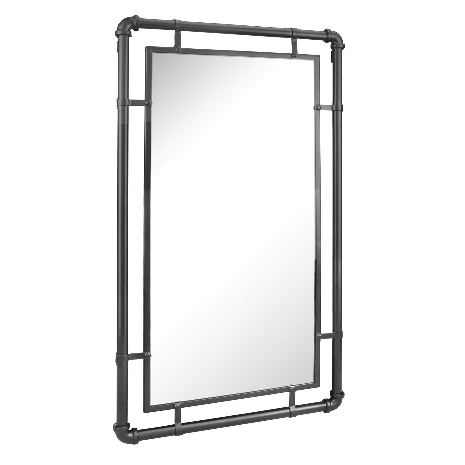 29" Rectangle Industrial Black Metal Pipe Wall Mirror