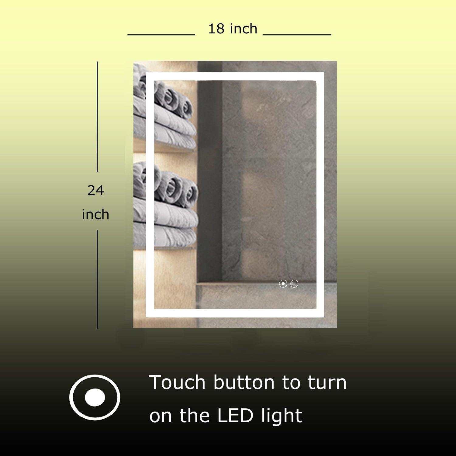 LED Vanity Mirror with Lights 24x18 Inch - Dimmable Wall Mounted Bathroom Mirror