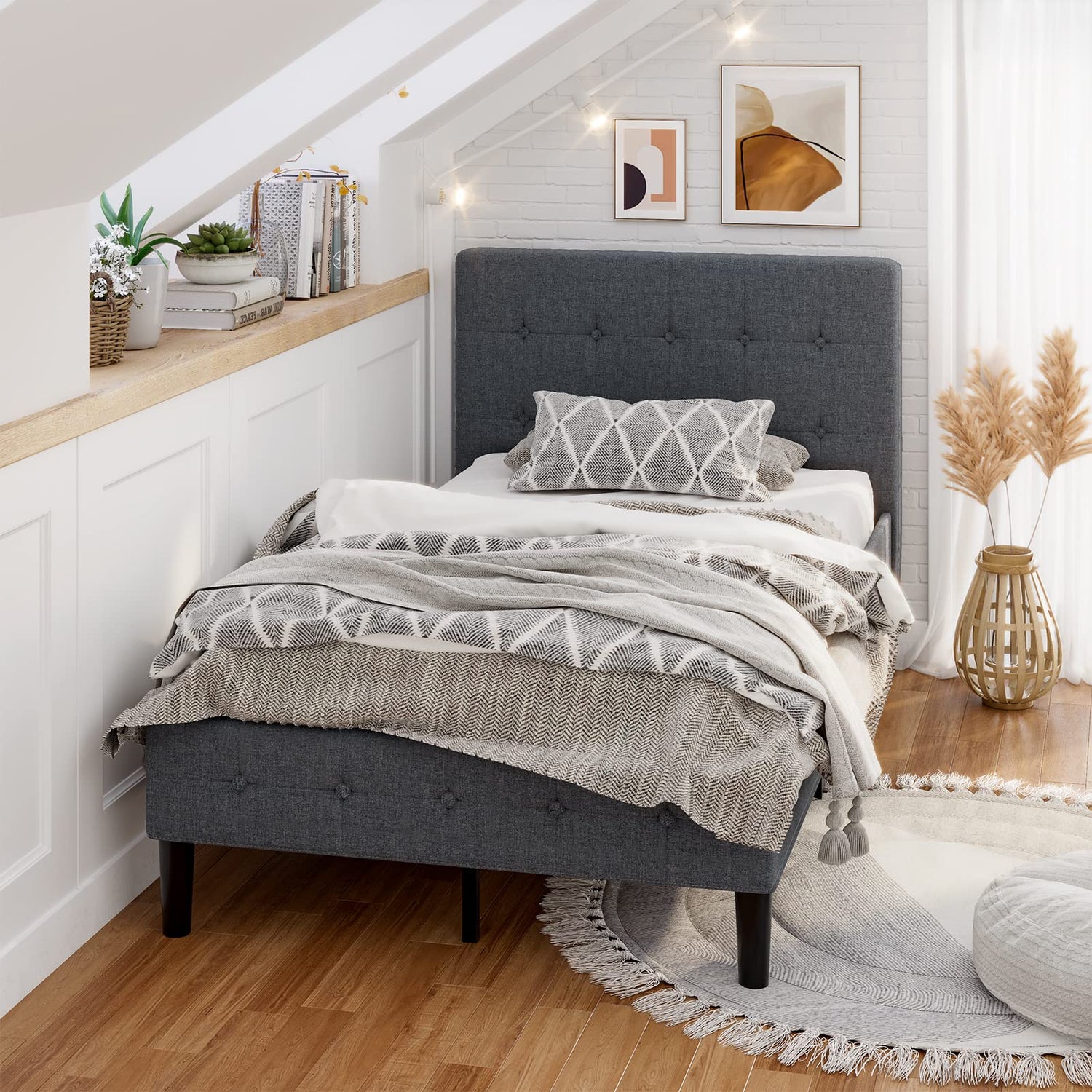 Twin Upholstered Bed Frame with Button-Tufted Headboard - Grey - Headboard Style 1 is backordered and will ship as soon as it is back in stock.