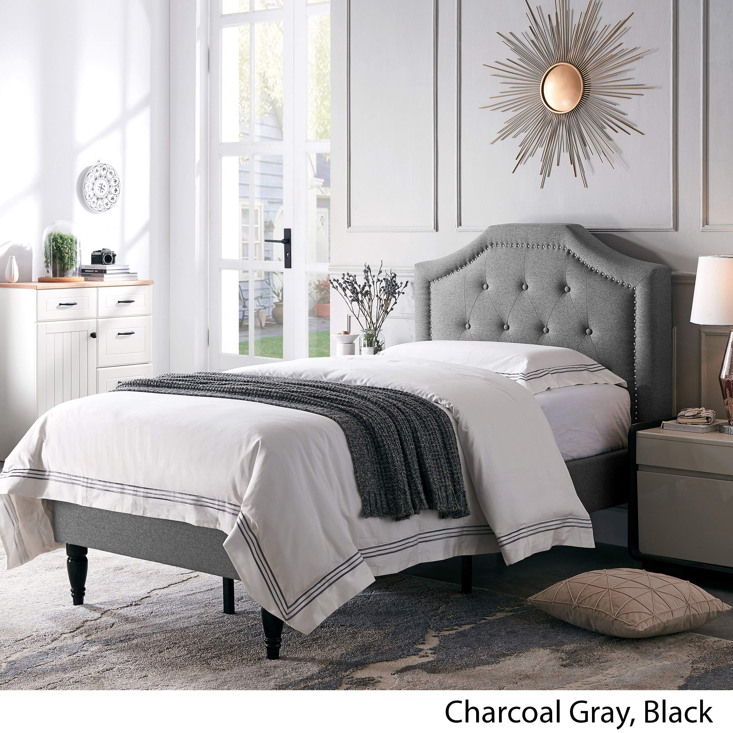 Xenia Twin Bed Platform, Charcoal Gray, Black