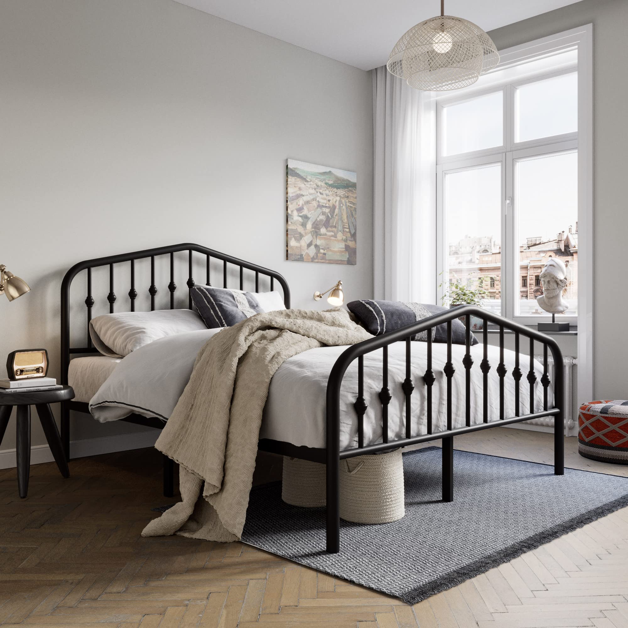 Queen Size Metal Bed Frame with Headboard and Footboard, Steel Slat Support