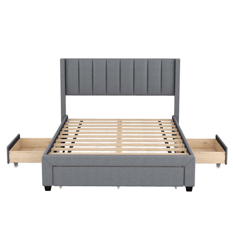 Regular price From $635.99 USDUnit price /UnavailableIn stockUpholstery Platform Bed with Four Drawers on Two Sides Grey - Full