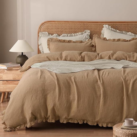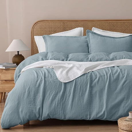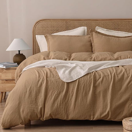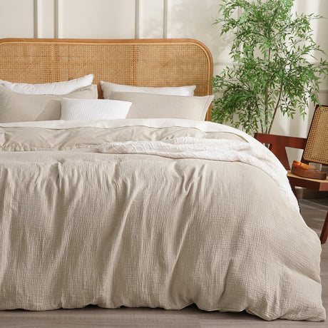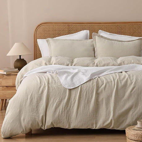 100% Natura Cotton Muslin Duvet Cover Set Queen Size, Ultra Soft Breathable Absorbent