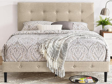 Upholstered Wooden Platform Bed Frame, Full Size, Dark Grey