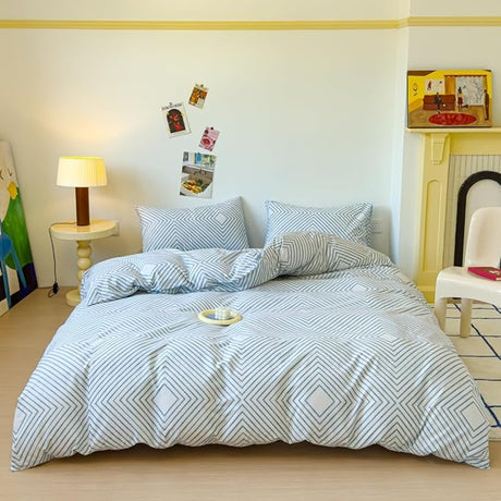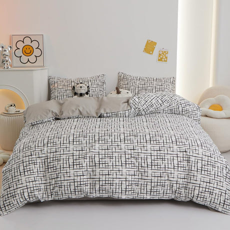 Plaid Duvet Cover Set Queen 100% Cotton Bedding Black and White Grid Checkered Print