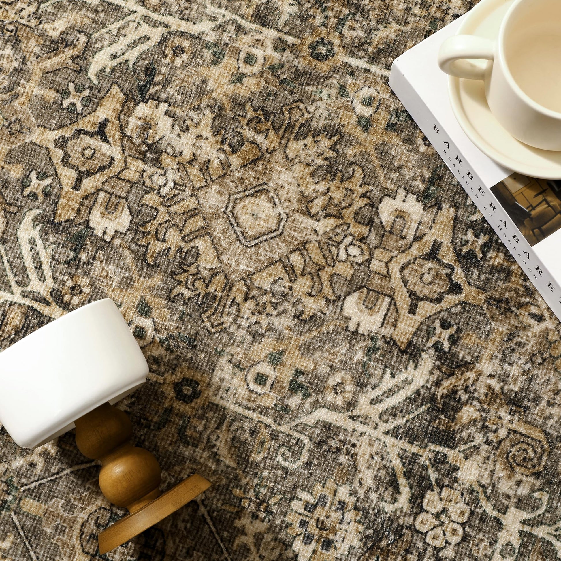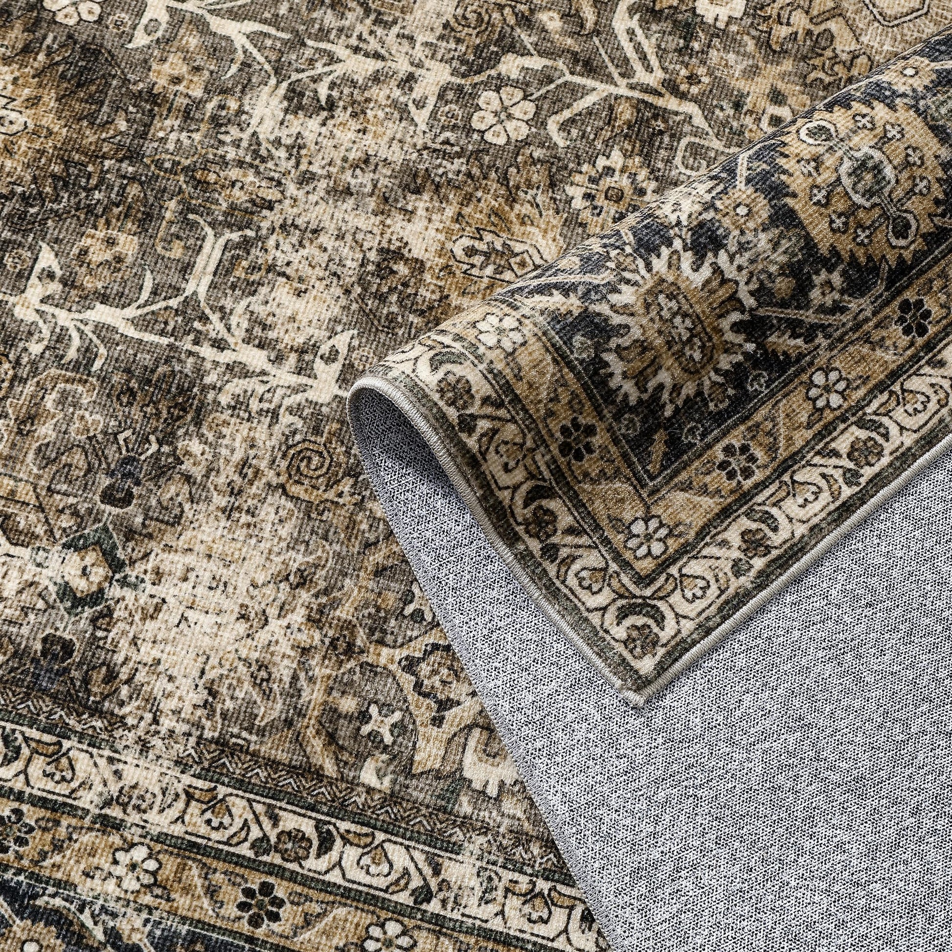 PureCozy Vintage Area Rug 4x6 Brown Bedroom Rug Indoor Kitchen Washable Living Room Carpet Tribal Distressed Rug Retro Accent Throw Rug for Office Dining Room Bathroom Faux Wool