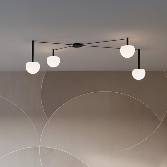 - Modern semi-flush mount design with 4 bubble ball glass shades