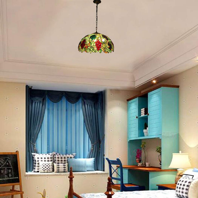 Tiffany Style Baroque Pendant Lamp Red Grape Green Leaves Stained Glass 20 Inch Shade - Red is backordered and will ship as soon as it is back in stock.