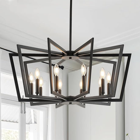 Regular price $371.99 USDUnit price /UnavailableIn stockBlack Living Room Chandelier 12 Light Hight Ceiling Foyer Candle Chandelier Large
