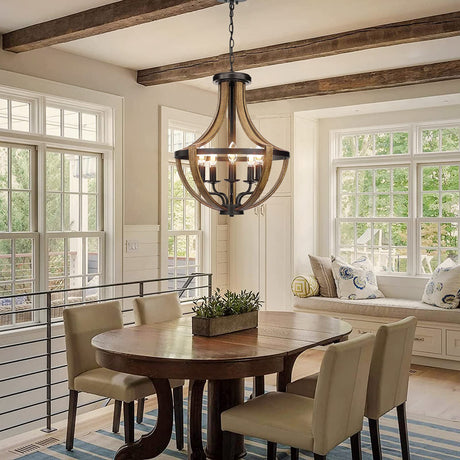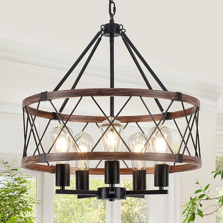 Regular price $296.99 USDUnit price /UnavailableIn stock5-Light Farmhouse Chandelier for Dining Room, Rustic Wood Chandelier for Over Table