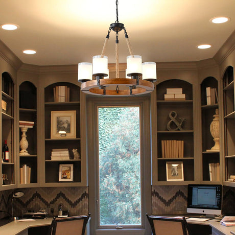 Regular price $498.99 USDUnit price /UnavailableIn stockFarmhouse Wood Wagon Wheel Chandelier,6-Light Rustic Pendant Light with Glass Shades