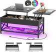 Coffee Table, Lift Top Coffee Table with LED light and Power Outlet