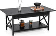 Industrial Coffee Table, 2-Tier Wood Cocktail Tea Table with Storage Shelf - Black is backordered and will ship as soon as it is back in stock.