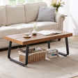 - Modern Coffee Table with Rustic Charm: This solid wooden coffee table seamlessly blends a modern aesthetic with rustic charm, featuring a 2.36-inch thick natural wood tabletop and a sturdy metal frame.