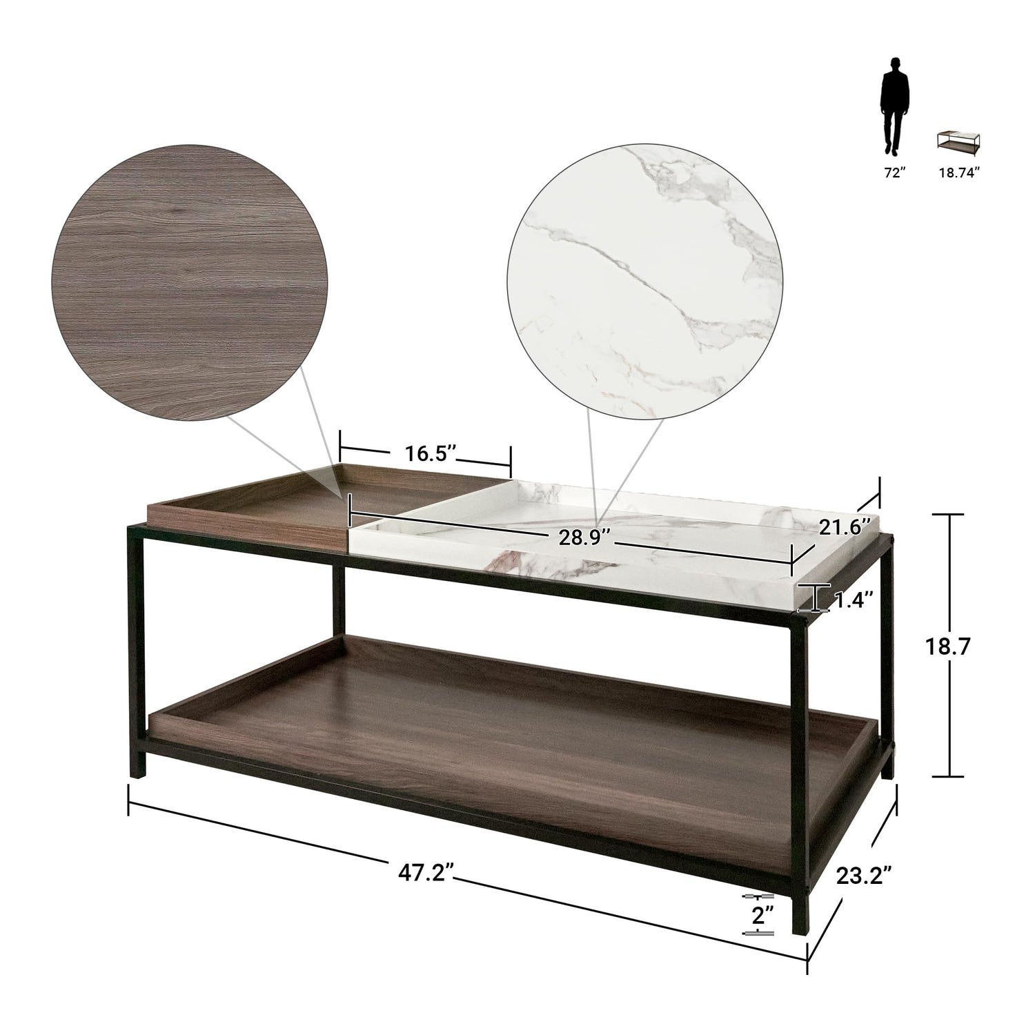 - Our coffee table features a unique selling point with its dual detachable trays on the tabletop. This innovative design allows you to easily lift and carry two trays, adding a practical touch to your space.