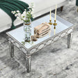 Mirrored Glass Coffee Table, Modern Side Coffee Table with Transparent Tempered Glass