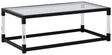 - TEMPERED GLASS TOP: Supported by a metal frame with black powder coat finish and transparent acrylic legs. Position it next to a sofa or chairs in a family room as a place to set drinks and magazines