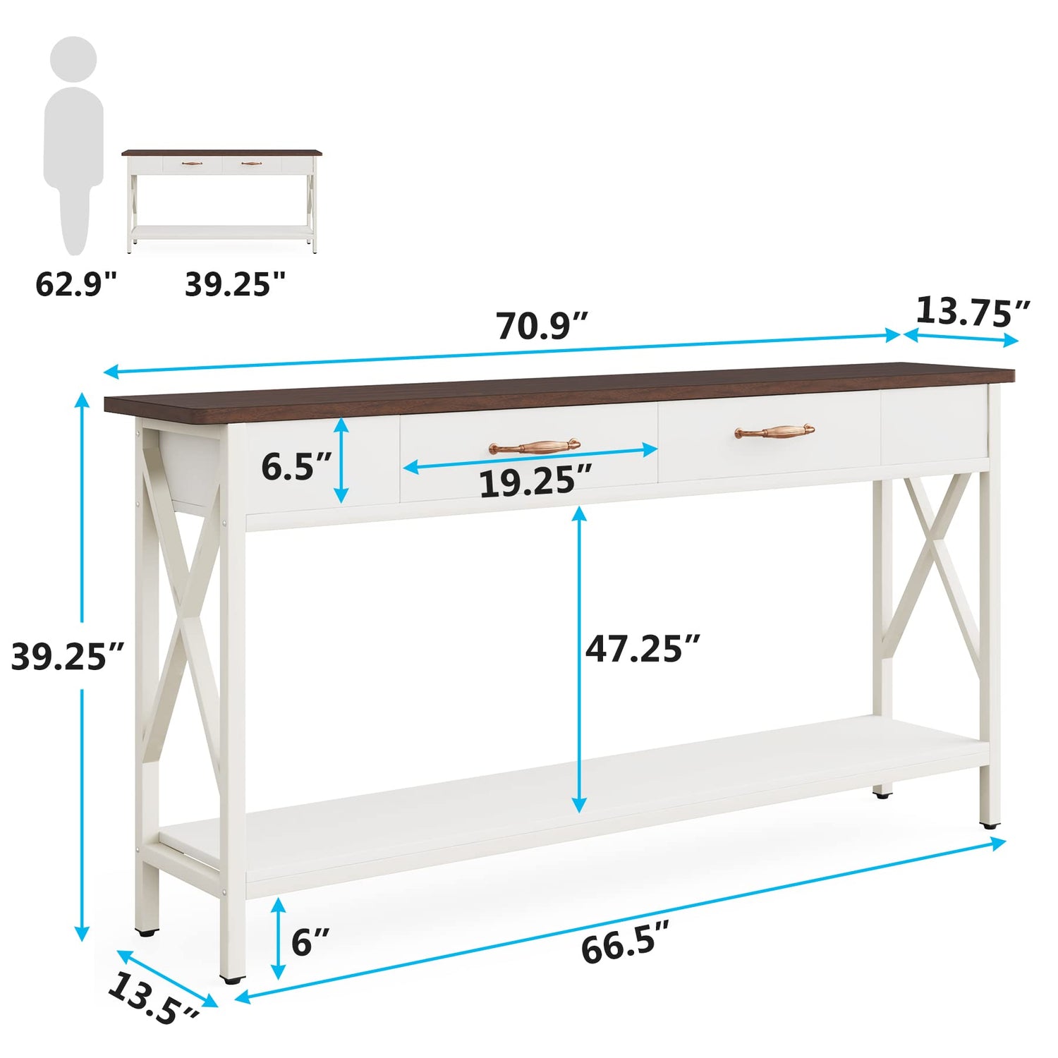- Versatile Sofa Table Tribesigns 70.9 inch extra long table is a sofa table, console table, TV stand for entry, hall unit, behind your couch, and living room. Simple yet functional, its storage space fits your different needs perfectly
