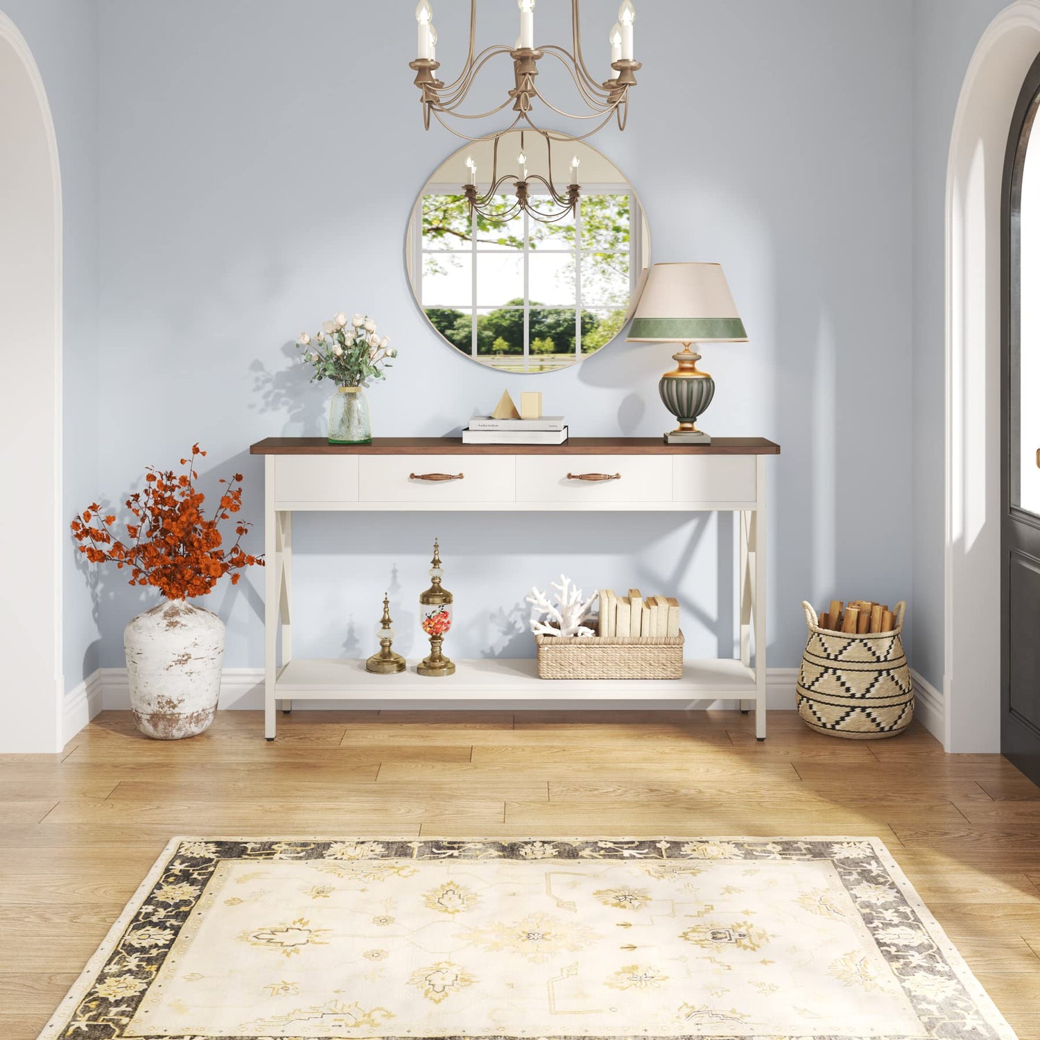 - Contrast Color DesignThe white table body and dark walnut top make up the unique console table. Not only does it show off your taste, but it also gives your house a new look