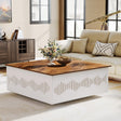 - Farmhouse Elegance: This square coffee table features a brown V-shaped grain tabletop and a white base with striped carvings, creating a cozy vibe and delivering a farmhouse charm and elegance to your room. It complements any modern or rustic home settings