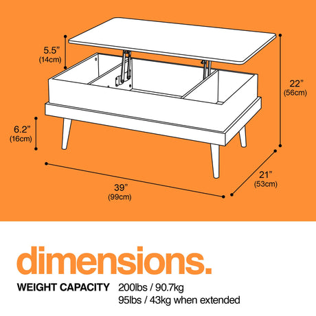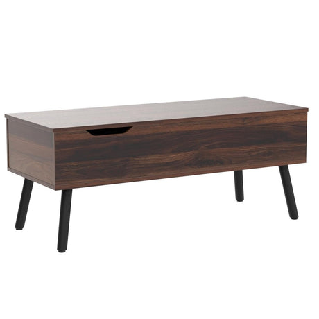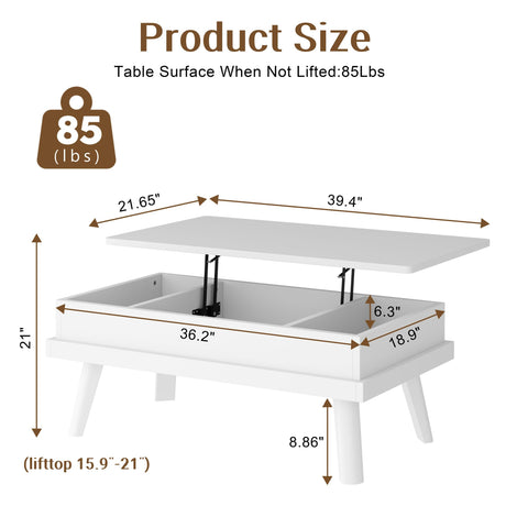 Lift Top Coffee Table - Rectangular Wooden Table w/Hidden Compartment & Open Storage