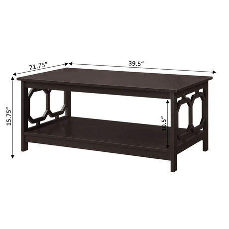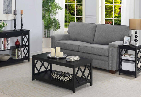 Oxford 36 inch Square Coffee Table with Shelf, Black