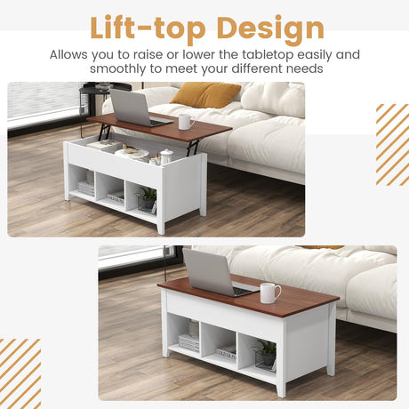 Coffee Table, Lift Top Coffee Table with Separate and Hidden Storage Compartment