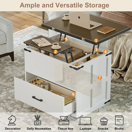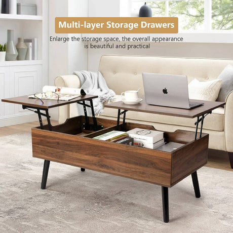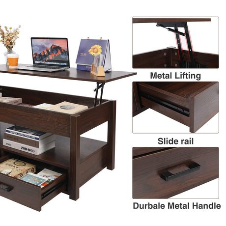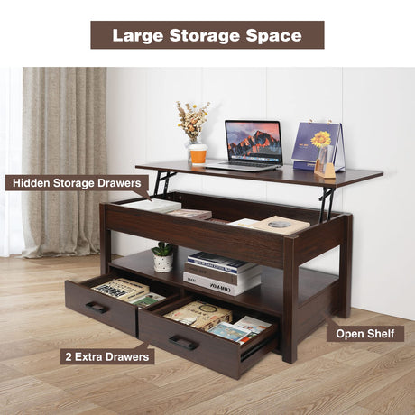 Lift Top Coffee Table with Storage,Lift Tabletop with Drawers and Hidden Compartment