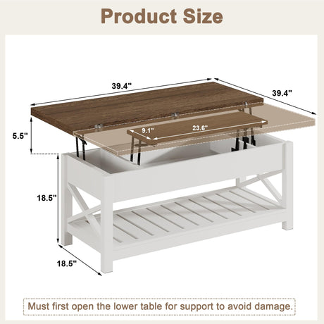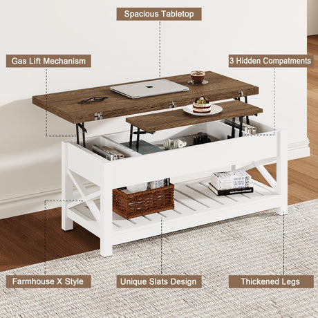Farmhouse Lift Top Coffee Table, Multi-Function Convertible Coffee Table