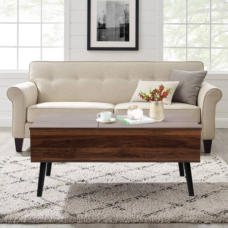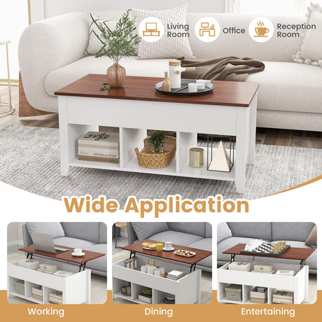 Wood Lift Top Coffee Table with Hidden Compartment and Storage Shelf
