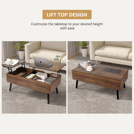 Coffee Table, Lift Top Coffee Table with Hidden Compartment, Rising Tabletop Dining Table