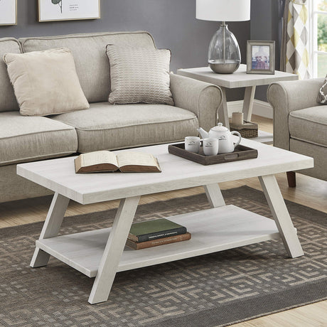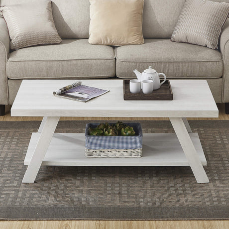 Simple X-Design Cocktail Coffee Table with Storage Shelf, Farmhouse 2-Tier Center Table