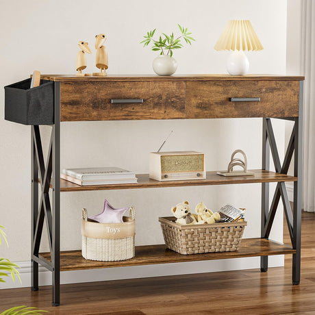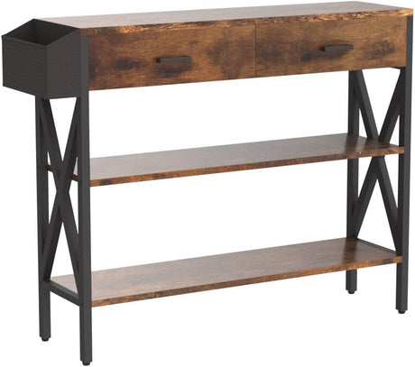 39" Console Table with 2 drawers, Industrial Entryway Table with 3 Tier Storage Shelves,