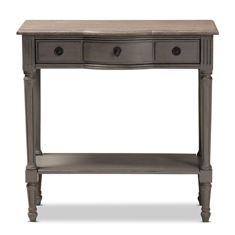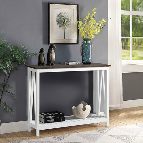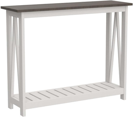 French Country Console Table with Drawer and Shelf, Driftwood/White
