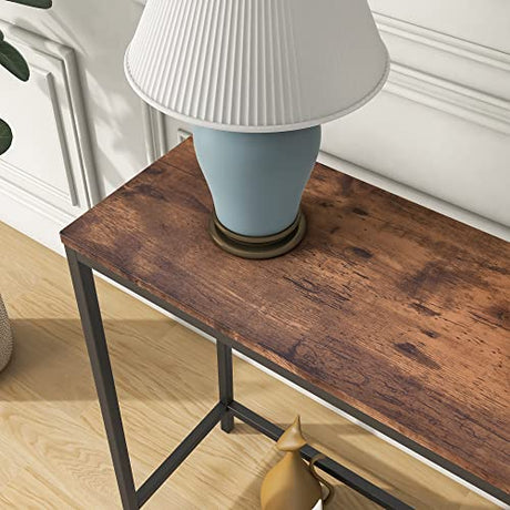 Console Table, 41.7" Industrial Entryway Table with Shelf, Narrow Sofa Table for Hallway,