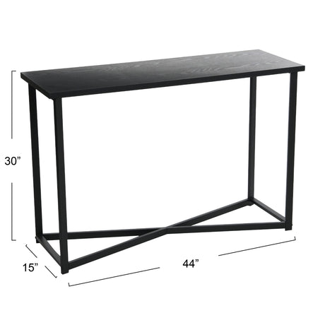 Jamestown Console Sofa Table Black Oak Wood Grain and Black Metal