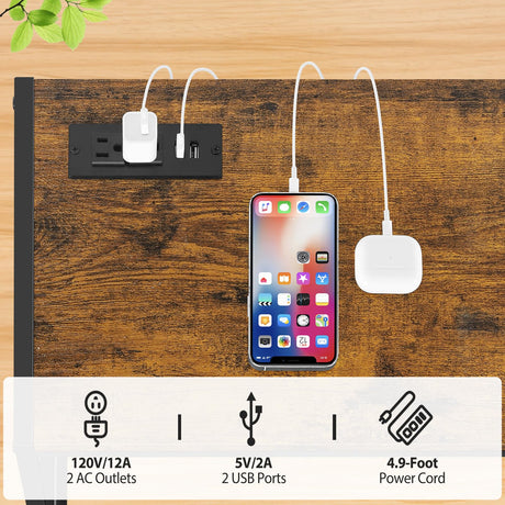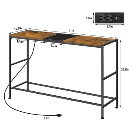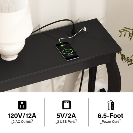 Console Table with Outlets and USB Ports, Narrow Sofa Table,