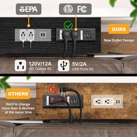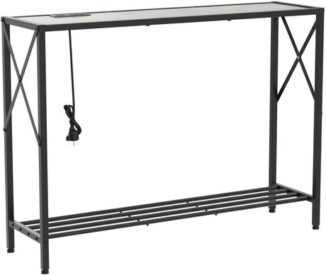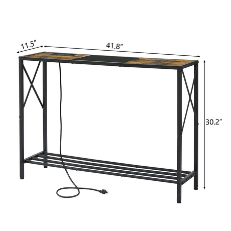 Sofa Table with Outlet and USB Port, 47" Console Behind Couch Table with Steel Frame,