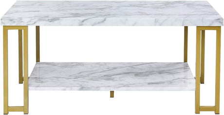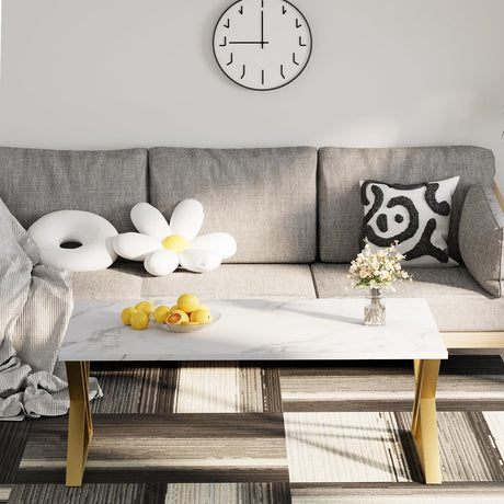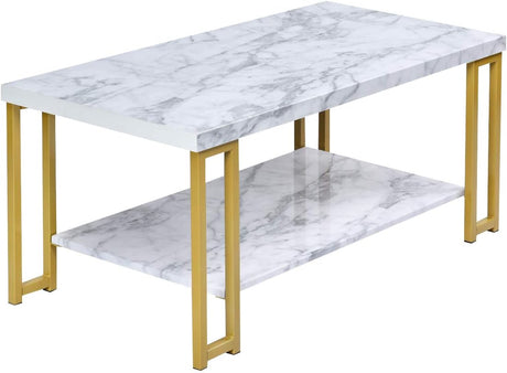 41" Marble White Cool Coffee Table for Living Room,Rectangular Glossy Smart Contemporary Center