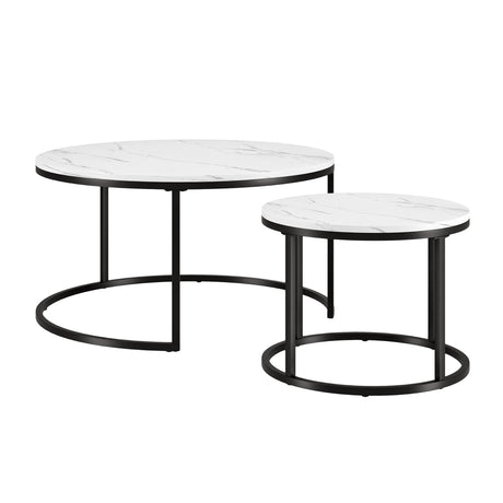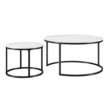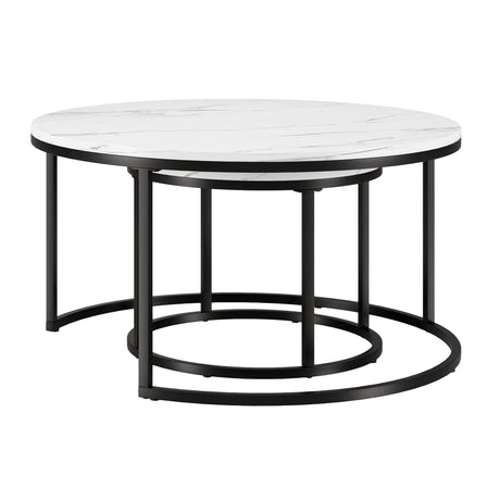 Round Coffee Table, 32" Circle Faux Marble Coffee Tables for Living Room, 2-