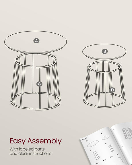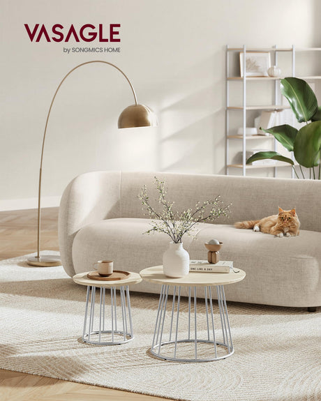 Round Coffee Tables, Set of 2, Modern Circle Side Tables with Steel Frame,