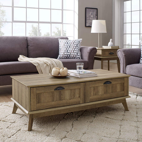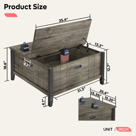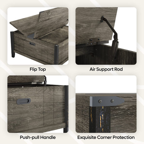 Todoe Industrial Rectangular Lift Top Coffee Table with 2 Storage Drawers,