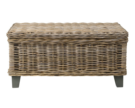 Woven Rattan Storage Coffee Table - Handwoven Natural Brown Rattan, Hidden Storage